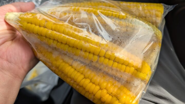 ちなみにこのトウモロコシの品種は、ゴールデンクロスバンダムである。