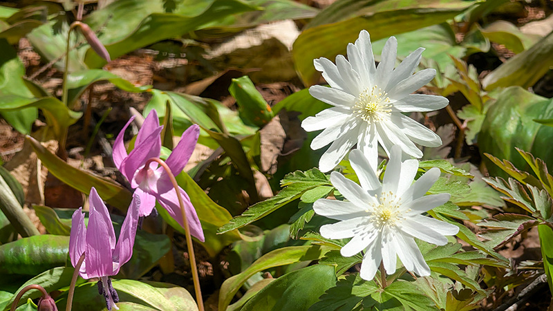 黒松内町 奥の院のカタクリとキクザキイチゲ