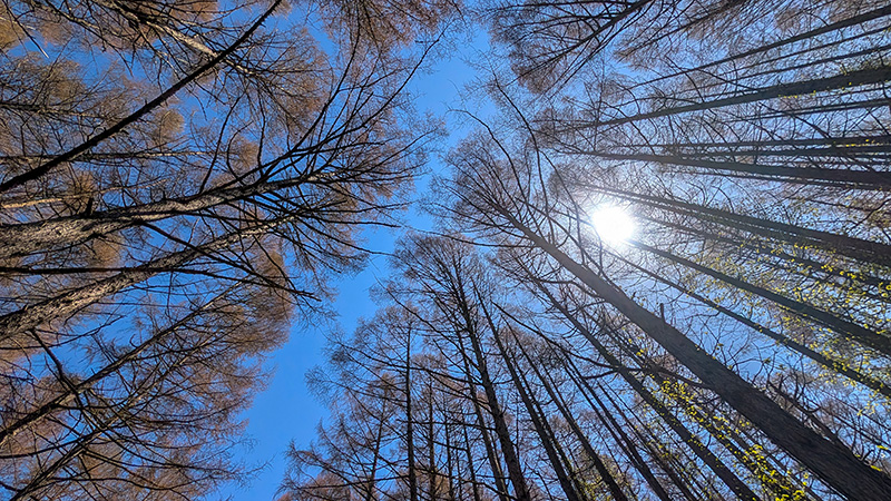 黒松内町 奥の院 林はカラマツが多い