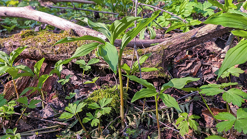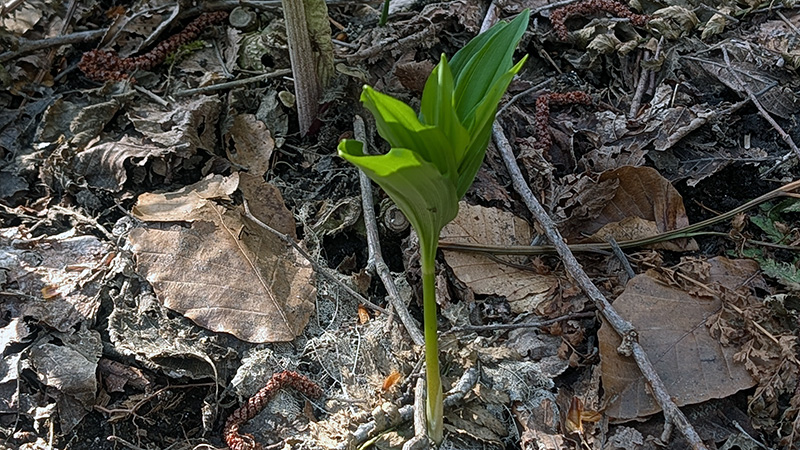 八雲町にて ユキザサ(アズキナ) 斜面では太い物が多いが、この山菜もタイミングである