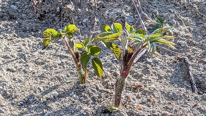 八雲町にて 日当たりの良い斜面を探すと細いながらウドが顔を出していた