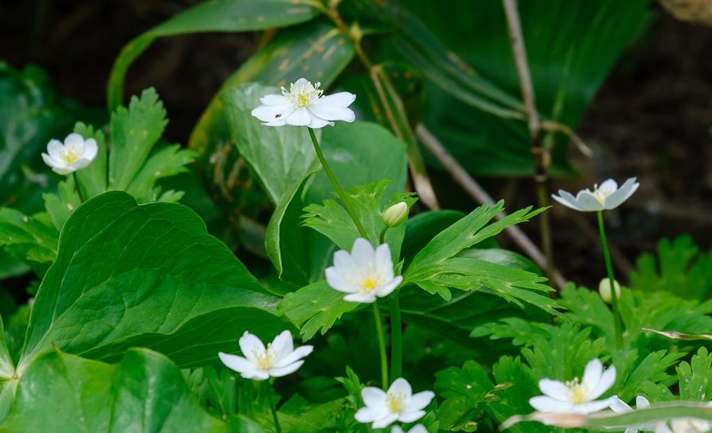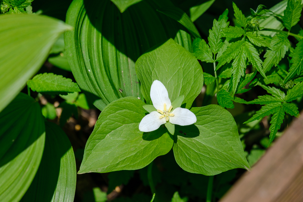 この星置緑地だけど水芭蕉は見頃が終わっているとはいえ、大きな葉を広げている。エゾノリュウキンカやバイケイソウなど、葉の大きな植物が林床を埋めている。ニリンソウやイチゲ、エンレイソウなどはその間にささやかに咲く。その意味ではスプリングエフェメラルと言われる種にとって、かなり競争の激しい場所の様な気がする。