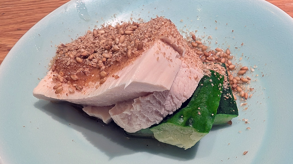 結論からいうと鶏肉も野菜はとても美味しかったし、特に店で3度提供される徐々に濃厚となるスープが美味で、スープに少し浮かぶ上質の鶏から出る鶏油(ちーゆ)の香りも素晴らしかった。