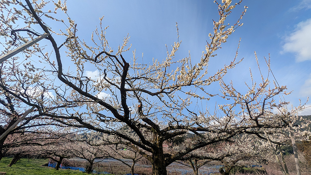 日田の宿で梅園の話を聞き、翌日その梅園を訪れてみた。既に散り始めではあったけど、北海道の梅が約二ヶ月後に咲くことを考えると花が咲いているだけで癒やされる。この梅園は私有地の梅園を開花時期に開放しているという事だが、本来の目的は名産品である梅酒や梅干しの原料栽培である。