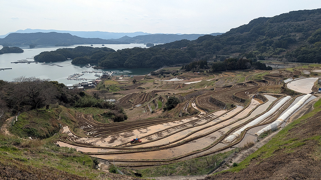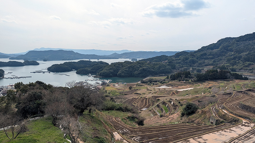 平地の少ない唐津から伊万里の間は多くの棚田が存在する。残念ながら田植え前であり、田に水が張られていなかった。もっとも、観光客である僕が景色だけのことを勝手に言っているだけで、その地形で稲作を行う苦労を考えると景色は些細なことだ。