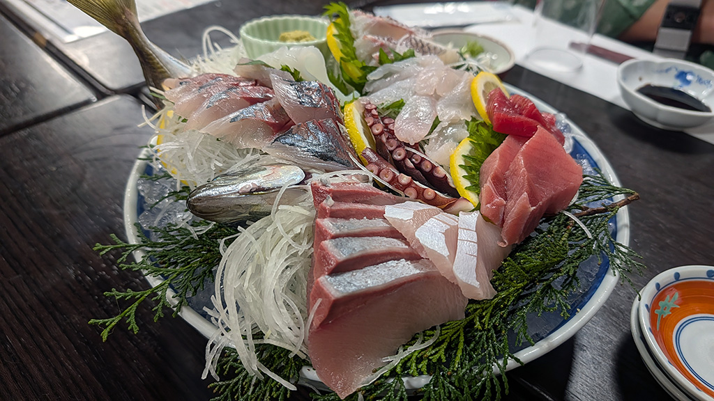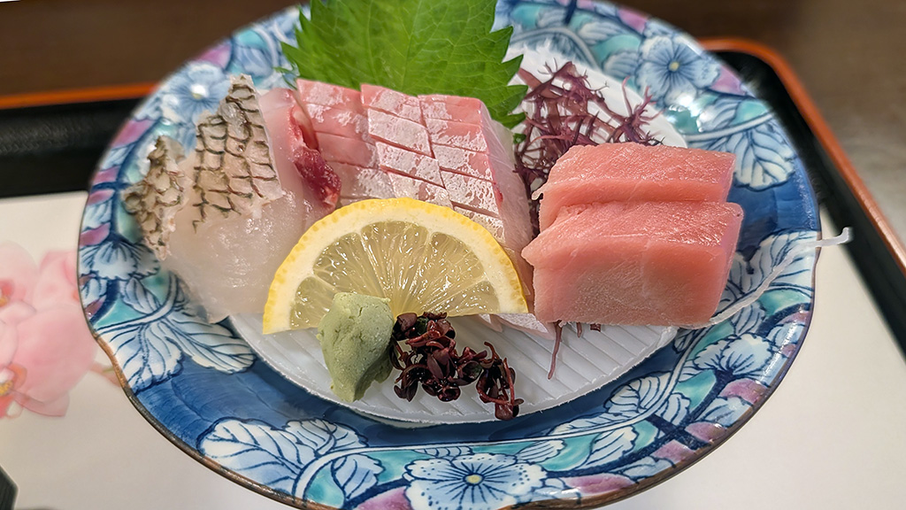 旅館 海望荘 お造り 鯛皮の湯引きが美味であった