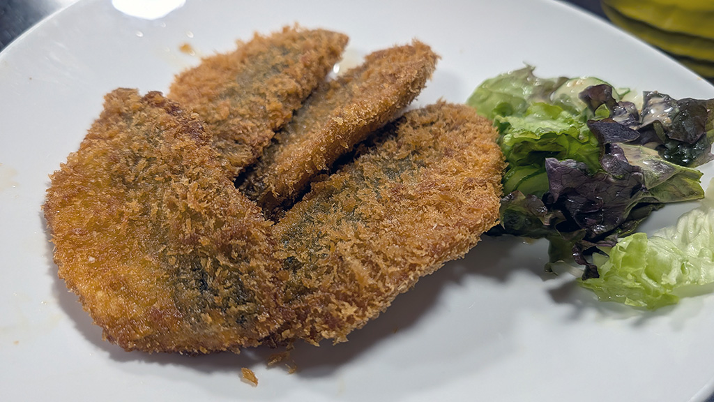 でも、こちらのお店、基本的にボリュームが多い様に感じる。上の写真はご飯を有料の蟹飯に買えたものだからなのかもしれないけど、味噌汁椀と比べて茶碗の大きさと盛りの良さは判って貰えると思う。若者にはありがたいボリュームではあるものの、体重をコントロールしている身としては明らかに多い。困った事に牡蠣フライも蟹飯も美味しいから残すということが出来ないのだ。