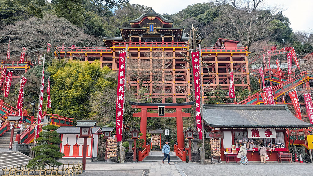 その意味では旅中では夏から秋に訪れるべき神社だと思うけど、三月の今回、木々の葉が茂っていない時期の境内は御本殿がはっきりと見え、寒い時期は時期のお参りも決して悪くはない。