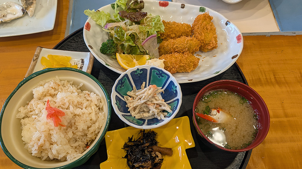 竹崎かに 園(その)牡蠣フライ定食(有料でご飯を蟹飯へ変更)