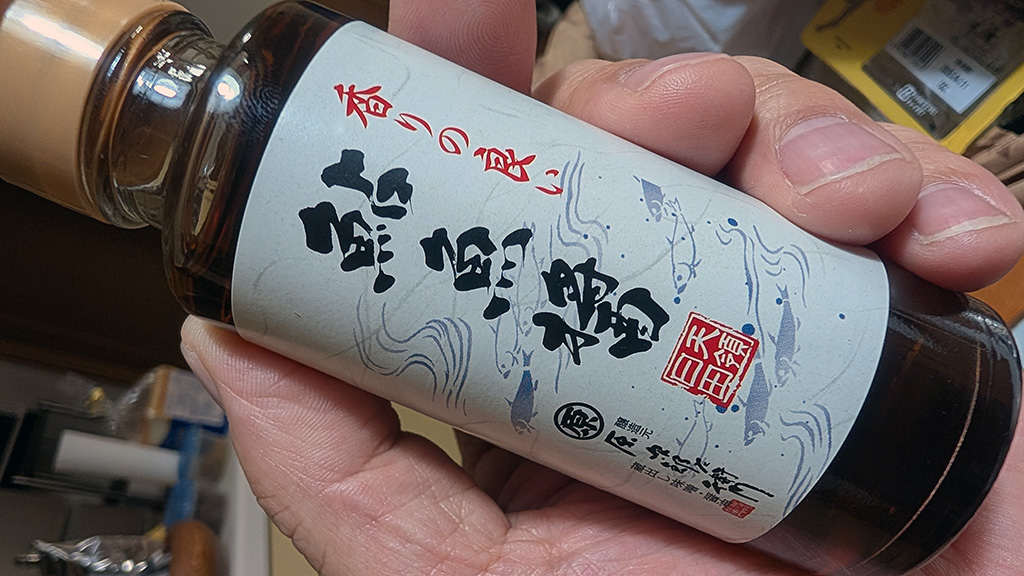 日田で買い求めた鮎魚醤 この瓶一本で1037円と安くはないものの、個人で使う用途で調味料代をケチるのはナンセンスであろう。